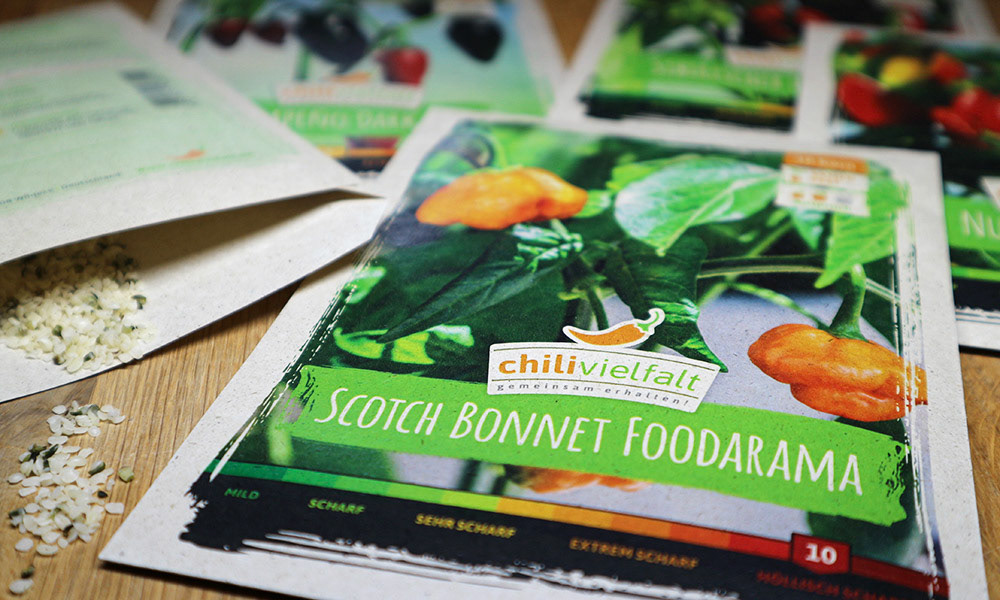 Produktdesign der Chili-Samentüten für die Marke „chilivielfalt“