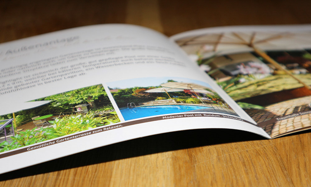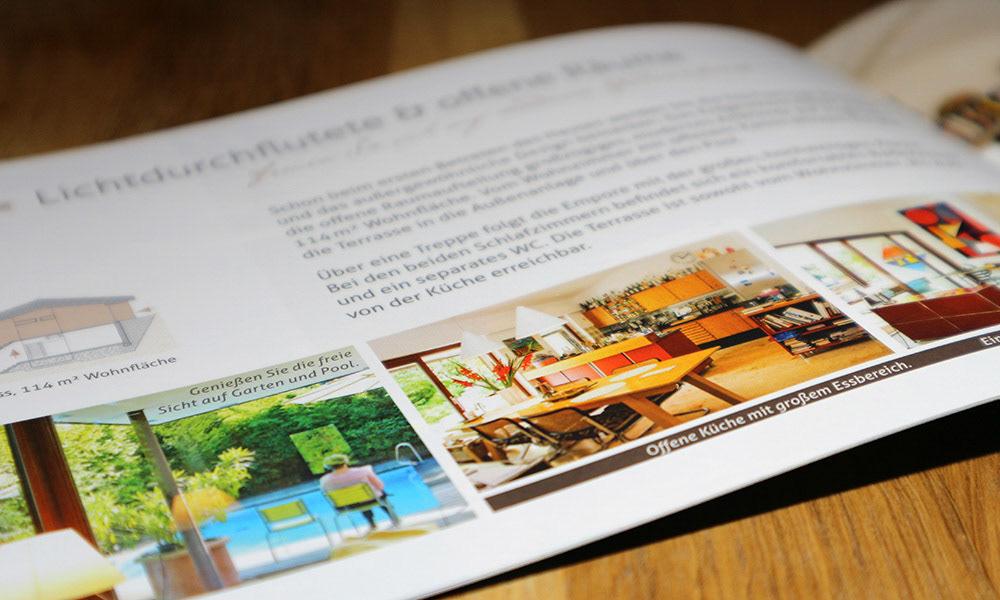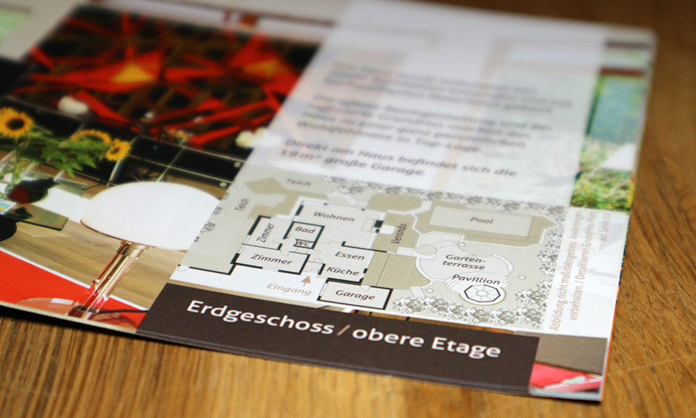 Konzeption und Gestaltung eines 12-seitigen Immobilienexposés sowie Erstellung der Grundrisspläne.