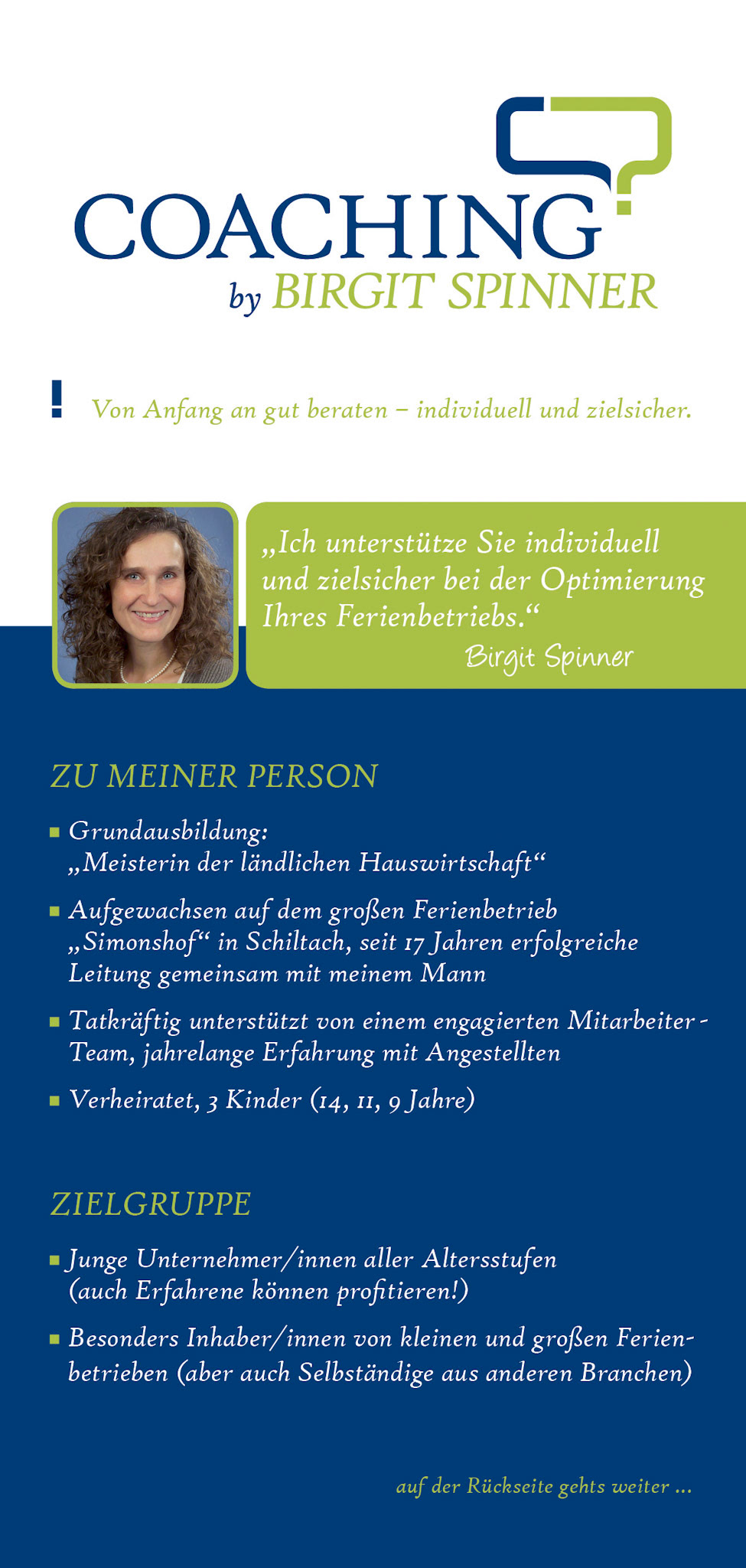 Konzeption und Gestaltung von Logo, Visitenkarte und Flyer für „Coaching by Birgit Spinner“